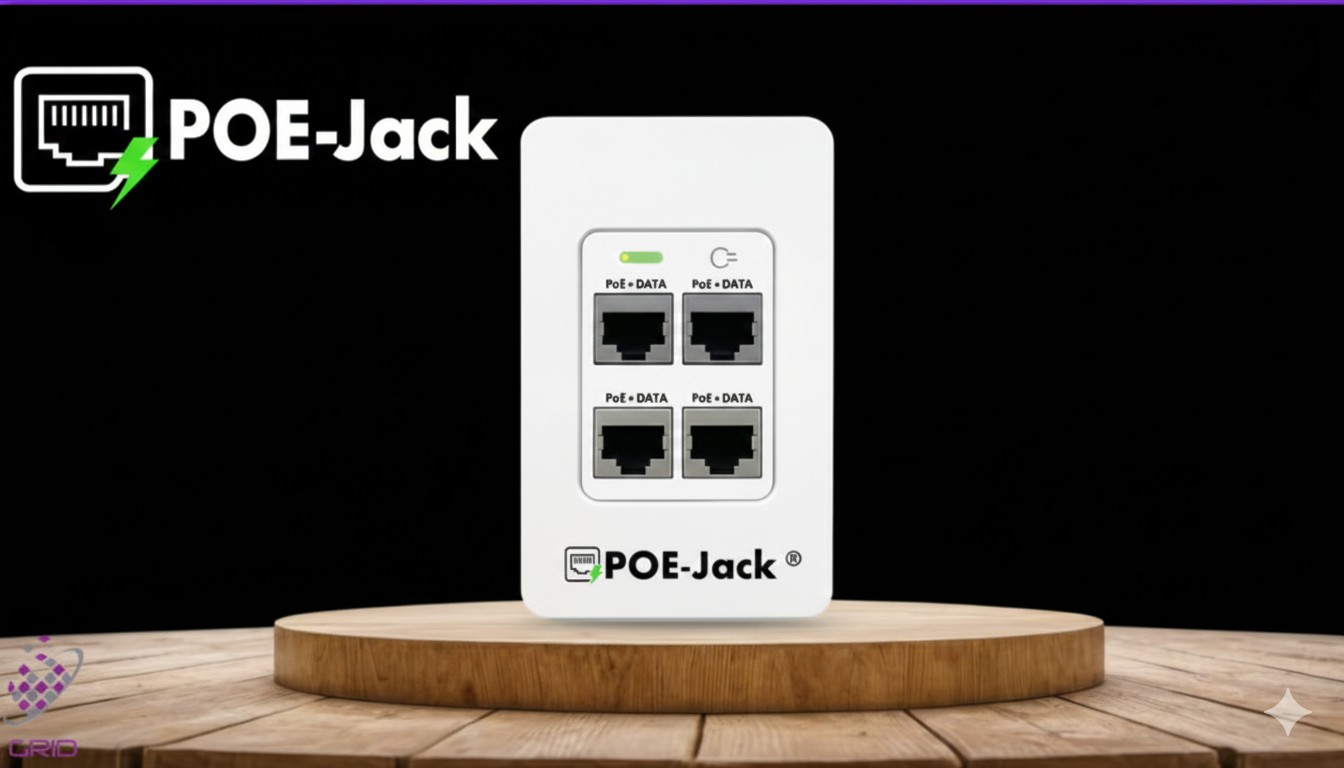 Revolutionize your cable runs. Discover the POE-Jack®, the active in-wall node that extends data and power exactly where you need it. Paired with our PoE-Optimized Cabling and robust Switches, GRID delivers the smartest infrastructure for security and Wi-Fi.
