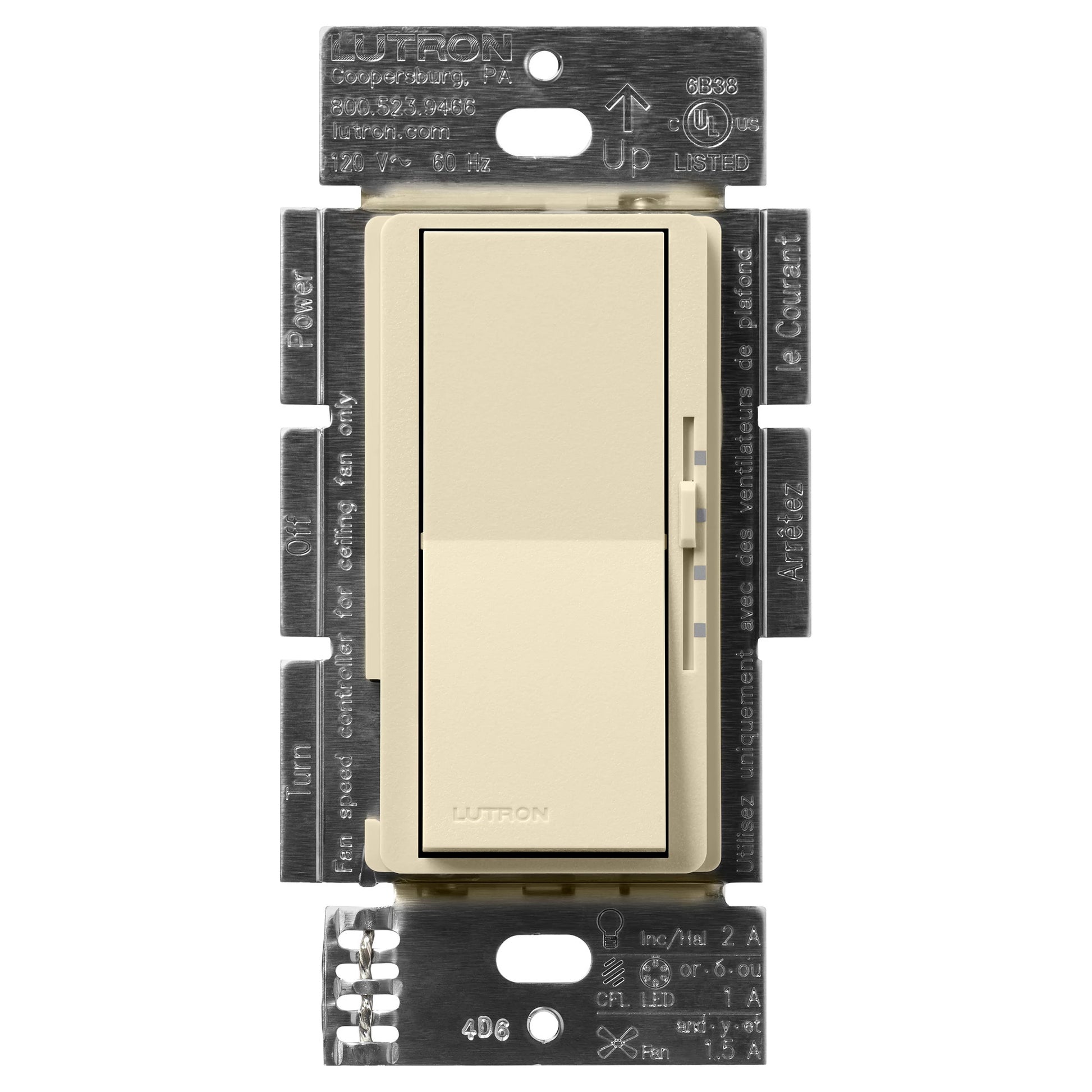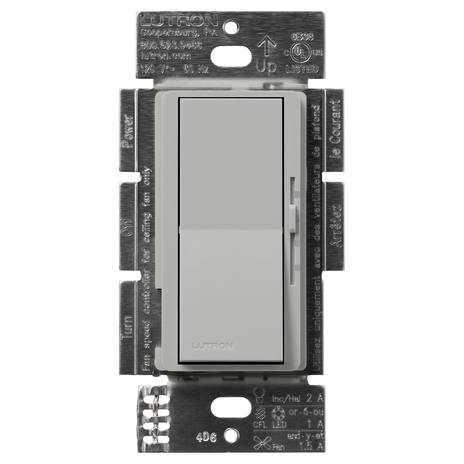 The Lutron Diva 3-Speed Fan Switch helps achieve the ideal comfort level for any home by controlling a single fan up to 1.5 Amps. The intuitive rocker switch turns the fan on/off to a preset and the linear slider adjusts between 3 speeds (Low, Medium and, High). Install with Lutron Claro Switches in 3-way applications. Coordinating Claro wall plates and 3-way switches sold separately. Available in 20+ colors to consistently match any Lutron device.